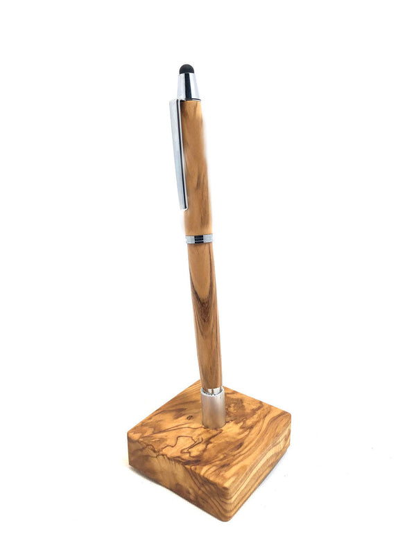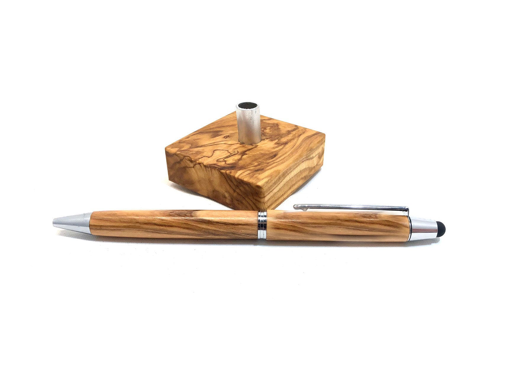Eine tolle und hochwertige Geschenkidee! Ein massiver Sockel (ca. 5 x 5 x 2 cm) plus dem schönen Kugelschreiber aus Olivenholz.